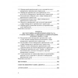 Правові та інституційні засади діяльності міжнародних кримінальних судів розглянуто з урахуванням їх організаційно-функціональної архітектоніки, у якості системи компетенційних повноважень цих судових установ та процесуальних форм реалізації їх юрисдикції. Розглянуто актуальні питання юрисдикційної діяльності органів міжнародного кримінального правосуддя. Визначено вплив практики Міжнародного кримінального суду та інших органів міжнародного кримінального правосуддя на міжнародне і європейське право, регіональні і національні правові системи.