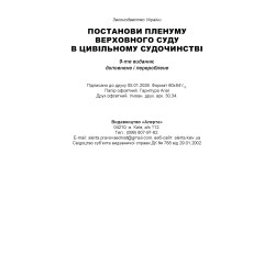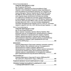 Видання включає систематизований збірник постанов Пленуму Верховного Суду та правозастосовну практику касаційних судів України з урахуванням останніх змін у законодавстві. До даного видання включено постанови Пленумів, що застосовуються в цивільному судочинстві, які в цілому узгоджуються із змінами, що внесені до цивільного та цивільного процесуального законодавства України.
