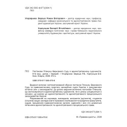 Видання включає систематизований збірник постанов Пленуму Верховного Суду та правозастосовну практику касаційних судів України з урахуванням останніх змін у законодавстві. До даного видання включено постанови Пленумів, що застосовуються в адміністративному судочинстві, які в цілому узгоджуються із змінами, що внесені до адміністративного та адміністративного процесуального законодавства України.